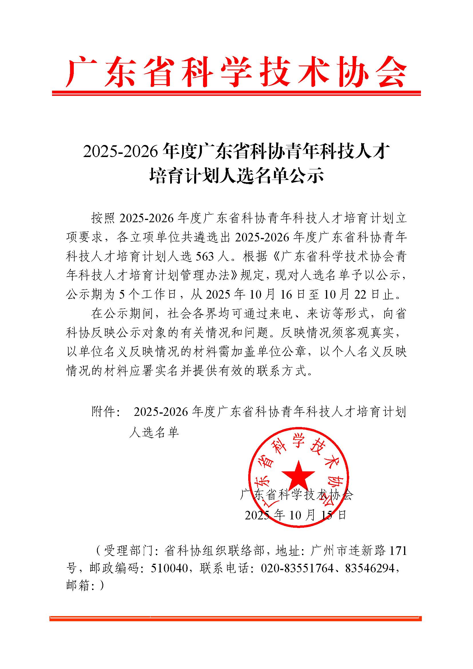 附件:2025-2026年度广东省科协青年科技人才培育计划人选名单公示