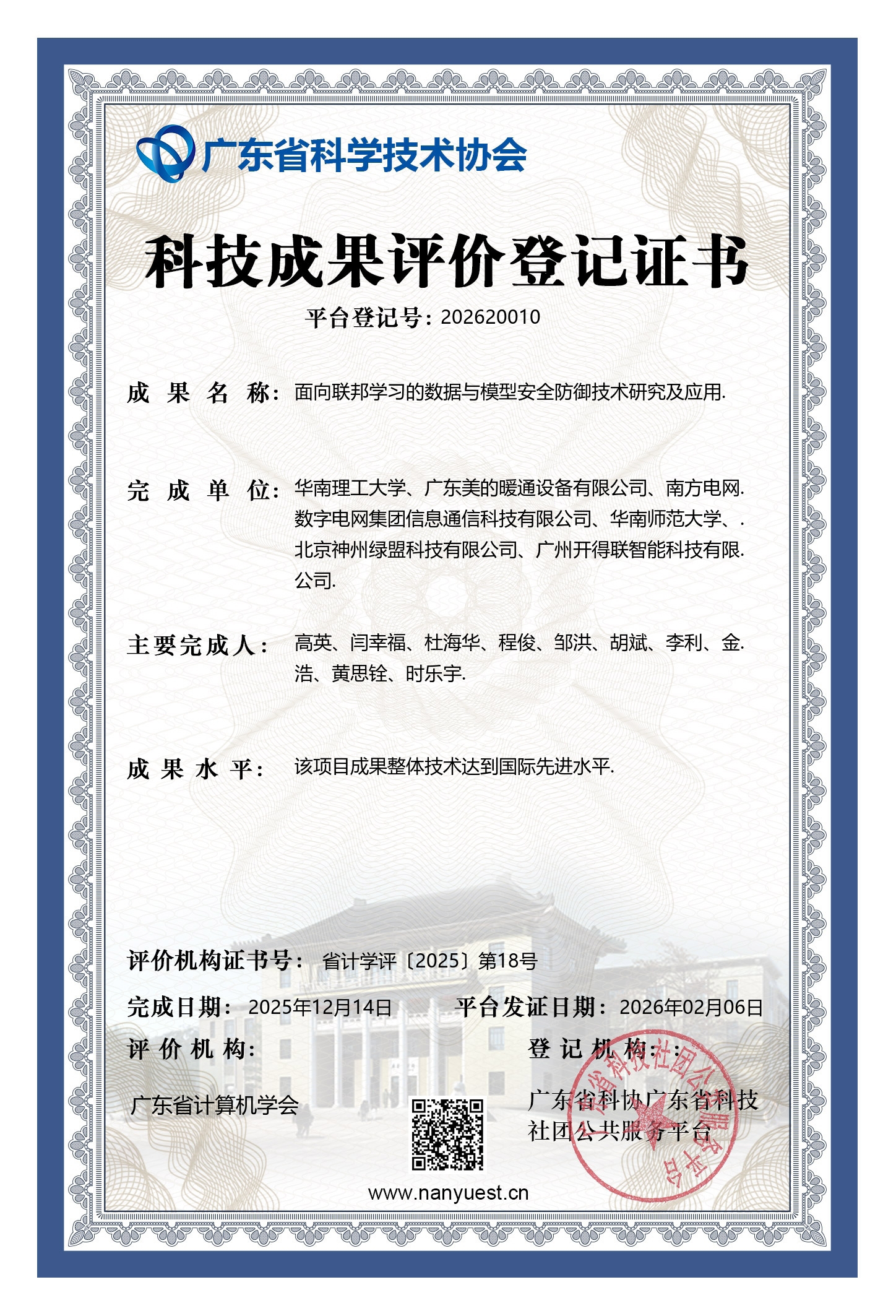 面向联邦学习的数据与模型安全防御技术研究及应用 |