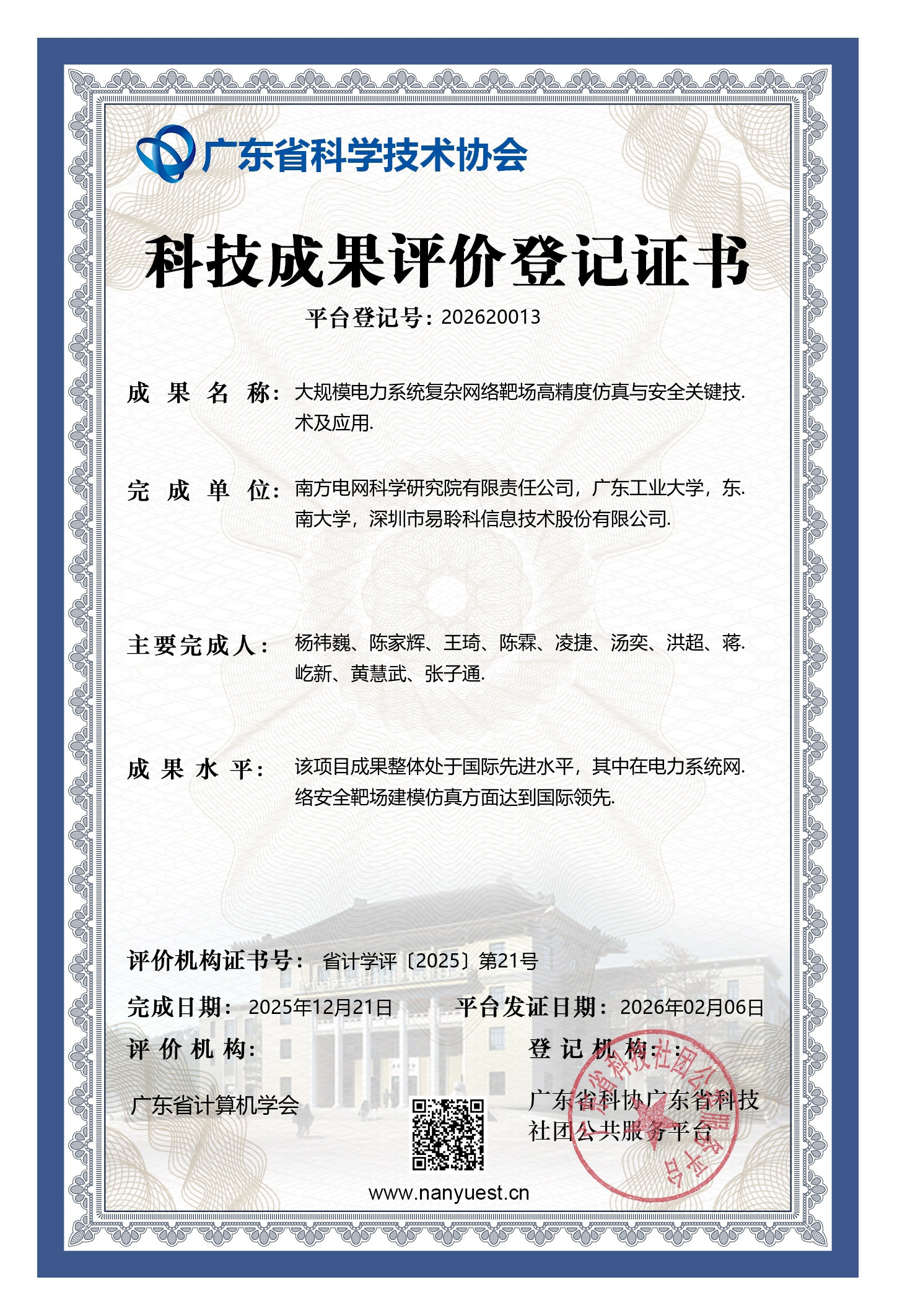 大规模电力系统复杂网络靶场高精度仿真与安全关键技术及应用 |
